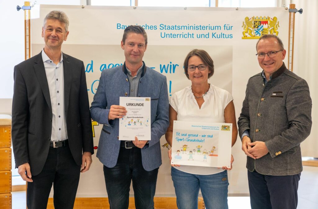 Mit der Initiative Sport-Grundschulen unterstützt das Bayerische Kultusministerium Grundschulen, die die Handlungsfelder Sport, Bewegung und gesunde Ernährung zu einem Schwerpunkt ihres pädagogischen Leitbildes gemacht haben. Wir sind stolz darauf, dass wir mit unserer Jahn-Grundschule die Auszeichnung, mit der aktuell auch die Mittel zur Durchführung einer dritten Sportstunde in Jahrgangsstufe 1 sowie 1.000 Euro zur Anschaffung von Spiel- und Sportgeräten verbunden sind, erhalten haben.
